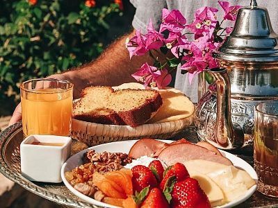 Movement in silence. Pilates on a sunlit terrace above the medina, with nothing between you and the Atlas. Your body finds its own rhythm. No instructions to follow — a conversation with your centre. Fresh juice from the gardens. The day begins slowly, the way days are meant to begin.