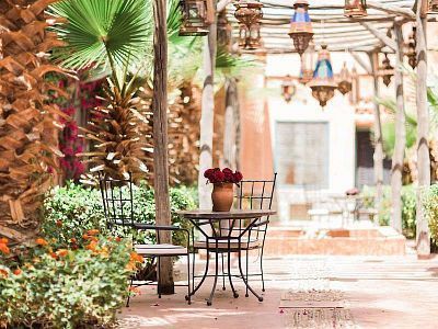 Movement in silence. Pilates on a sunlit terrace above the medina, with nothing between you and the Atlas. Your body finds its own rhythm. No instructions to follow — a conversation with your centre. Fresh juice from the gardens. The day begins slowly, the way days are meant to begin.
